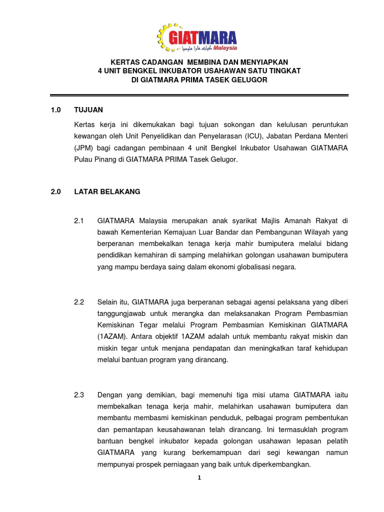 Kertas Kerja Bina Bangunan Inkubator Pdf