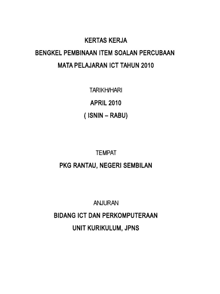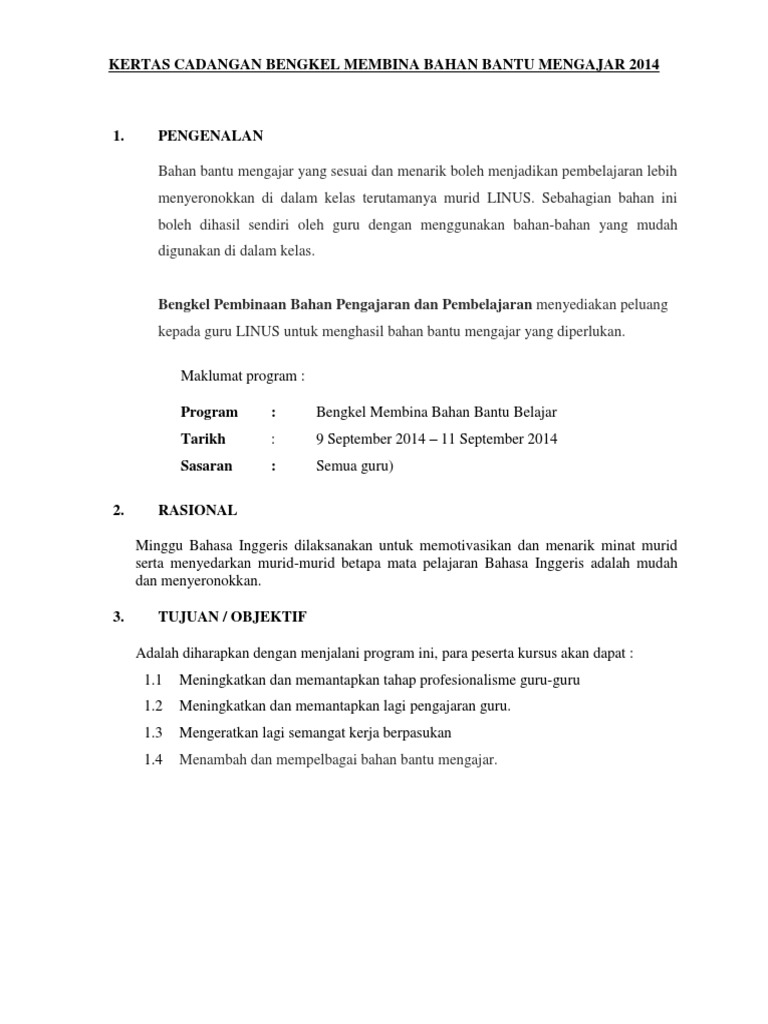 Contoh Kertas Kerja Bengkel Pdf