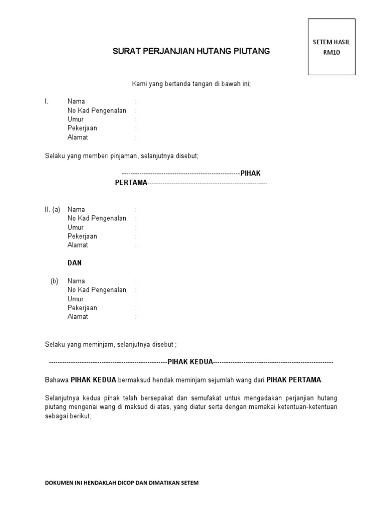 Contoh Surat Hutang Piutang Nusagates